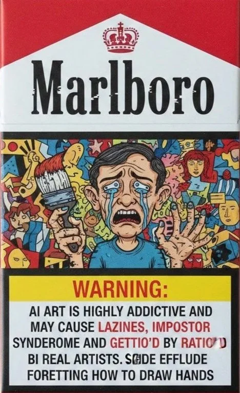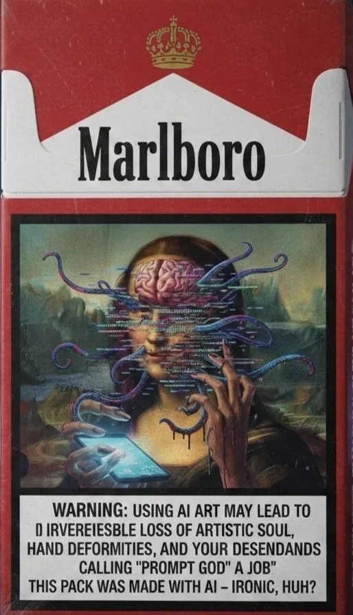 Cigarettes were and and still are responsible for suffering to human health. In a parallel way, unchecked AI art is creating real harm to the human art industry: eroding livelihoods, diluting originality, and training machines on work that was never meant to be taken.